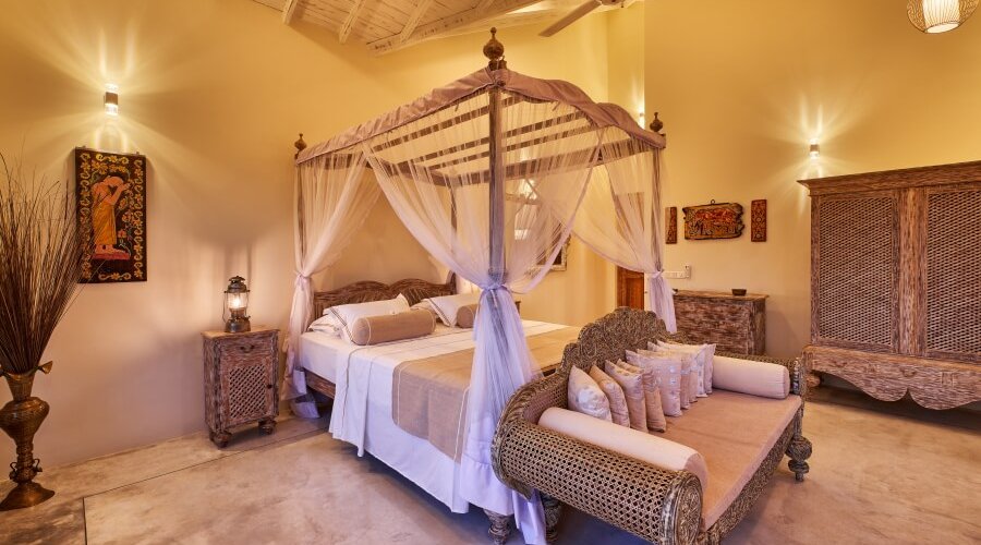 28°C The most incredible private space of the villa is nestled at the top to offer you a breathtaking view of the rice fields, the sea and the forest. 42 Sq meters fully equipped with furniture made in Sri Lanka, finding its local inspiration, has been created entirely for you, to make your experience unique. All complemented by decorative objects found in local antique shops.